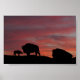 Eine Herde von Bison wird gegen einen blühenden Sonnenuntergang silhouiert.