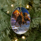 Bison Pulling Santa Claus Keramikornament