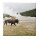 Ein Bison saunters hinter altem zuverlässigem Geysir in Yellowstone Nationalpark in dieser digitalen Malerei, basiert auf einer ursprünglichen Fotografie von Jayne Wilson.