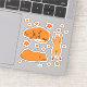 Niedlicher Cartoon schlafend vizsla vorne, hinten und Spreizkleber umgeben von kleinen roten Blume Doodle Aufkleber.