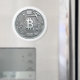 Exklusiver runder silberner Bitcoin-Magnet, der die Evolution der Digitalwährung symbolisiert.