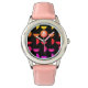Kinderuhr aus Edelstahl mit rosa Lederarmband