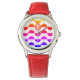 Kinderuhr aus Edelstahl mit rotem Lederarmband