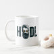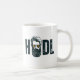 Diese Bitcoin Kaffee Tasse ist ein Bärenmann mit Bitcoin-Augen und dem typografischen Wortholz.