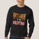 Fun Maximalist BITCOIN IST MEIN VALENTINE Sweatshirt, das ein gewölbtes BITCOIN in Uni-Typ Schriftart zeigt, und ein Foto Bitcoin Währung im Wort. Das Wort VALENTINE hat verschiedene Herzmuster in jedem Buchstaben des Wortes. Die Innendekoration ist im Stil der Maximalisten gehalten, mit Herzgruppen und Bitcoin im Hintergrund.