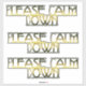 Auf diesen Aufklebern steht "Bitte beruhigen Sie sich".