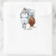 Ein Aufkleber mit einem lustigen Cartoon über eine Kuh und Truthahn, die sich dafür einsetzen, mehr Hühnchen zu essen. Bild und Text können personalisiert sein.