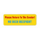 Dieses Label-Design enthält die Nachrichten "Bitte zurück zum Sender!" und "KEIN SOLCHER EMPFÄNGER". Es könnte verwendet werden, um anzugeben, dass die empfangene Post falsch adressiert worden sein könnte, und sollte an den Absender zurückgeschickt werden. [~Z0000168]