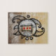 Abstrakte Formen mit der Anregung einer Tür oder eines Fensters über einen goldfarbenen, bräunlichen, stark strukturierten Hintergrund, mit roten Quadraten versehen.