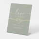 Erhöhen Sie Ihre Hochzeitsdekoration mit diesem eleganten, minimalistischen Kalligraphiezeichen in Salbei-Grün, das den süßen Satz "Liebe ist süß, bitte nehmen Sie eine Leckerei" enthält. Das romantische goldene Seilherz verleiht Ihrem Tisch eine Touch der Eleganz und lädt zum Verweilen in Ihren zauberhaften Leckereien ein. Ideal für ein zauberhaftes und stilvolles Fest!