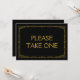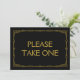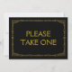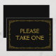 Einfaches und elegantes Art Deko-Stil "Bitte nehmen Sie eins" Hochzeitszeichen, personalisiert mit Ihrem eigenen Text, mit einem vergoldeten Deko-Rahmen über einem schwarzen Hintergrund. Dieses schicke Hochzeitsschild "Bitte nehmen Sie sich eins" sieht gut aus, auf einem matten Papier gedruckt, wenn Sie etwas traditionelleres verwenden die Laid, Linen oder Columned, wenn Sie gewollt, um eine Touch von Glasur hinzuzufügen, benutzen Sie den Luxe. Klicken Sie auf den Button "Anpassen", um zum Editor zu gelangen und eine andere Hintergrundfarbe zu wählen. Das ist ein flaches 5" x 7" Kartenzeichen, das in einem Bilderrahmen sehr elegant aussieht.
