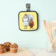 Ein Topfhalter mit einem lustigen Cartoon über eine Kuh und einen Truthahn, der den Menschen frage, mehr Huhn zu essen. Bild und Text können personalisiert sein. Orignalische Kunstwerke von DBcartoons.