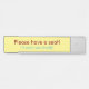 Dieses einfache, minimalistische Design beinhaltet die Meldung "Bitte haben Sie Platz!", zusätzlich zur Meldung "Ich helfe Ihnen in Kürze!". Dies könnte in einem gewartet Raum genutzt werden, um Kunden, Besucher oder Kunden darüber zu informieren, dass sie in Kürze unterstützt werden und bis dahin einen Sitzplatz haben sollten.