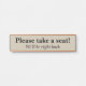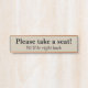 Dieses Grunddesign beinhaltet die Meldung "Bitte nehmen Sie Platz!" und die Meldung "Wir sind gleich zurück". Dies könnte in einer gewartet Lounge oder einem Empfang genutzt werden, um Kunden, Kunden oder Patienten darüber zu informieren, dass sie in Kürze begrüßt werden und bis dahin einen Sitzplatz haben sollten.