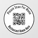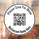 Ein schwarzer Kreis bildet den Rand. Eine schwarze Textzeile ist über und unter dem Display-Bild. Sie können den Text bearbeiten, um eine benutzerdefinierte Meldung wie Informationen über den QR-Code oder den Namen Ihres Unternehmens anzuzeigen. Denken Sie daran, Ihre Website-URL einzugeben, damit der QR-Code korrekt funktioniert.