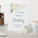 Bitte unterschreiben Sie unser Gästebuch White Rose Gold Floral Pedestal Sign. Die Standardgröße beträgt 8 x 10 Zoll, Sie können sie in andere Größen ändern. Für weitere Anpassungen verwenden Sie bitte das Design-Tool von Zazzle, um diese Vorlage zu ändern.