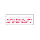 Dieses schlichte Design aus Gummi-Briefmarke beinhaltet die Meldung "BITTE ÜBERPRÜFEN, SIGNEN UND RÜCKKEHR SCHNELL.", zusammen mit einer Zeile, die oben eine Signatur oder Initialen schreiben könnte. Es könnte vielleicht von einem Lehrer oder einem administrativen berufliche genutzt werden, um zu verlangen, dass jemand den Inhalt eines Dokuments überprüft und anerkennt.