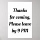 Danke, dass du gekommen bist, verlass bitte um 21.00 Uhr Funny Goodbye lustiges Introvert Poster