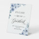 Bitte unterschreiben Sie unser Gästebuch Boho Dusty Blue Floral Pedestal Sign. Die Standardgröße beträgt 8 x 10 Zoll, Sie können sie in andere Größen ändern. Für weitere Anpassungen verwenden Sie bitte das Design-Tool von Zazzle, um diese Vorlage zu ändern.