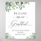 Dieses schicke Eukalyptus-Blätter "Bitte unterzeichnen Sie unser Gästebuch" Hochzeitszeichen ist die perfekte Ergänzung zu Ihrer Hochzeitsdekoration. Das elegante Design besticht durch eine wunderschöne Anordnung an Grünflächen und Eukalyptus-Blätter. Freuen Sie sich auf stilvolle und moderne Zimmer für Ihren besonderen Tag. Das Schild ist im digitalen Download-Format erhältlich, sodass Sie es einfach auf Zuhause drucken oder professionell drucken lassen können. Es ist eine großartige Möglichkeit, Ihre Gäste zu ermutigen, Ihr Gästebuch zu unterschreiben und bleibende Erinnerungen Ihres Hochzeitstages zu schaffen.