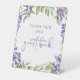 Bitte unterzeichnen Sie unser Gästebuch Lila Blumenschrift Wedding Lila Wisteria Floral Calligraphy Script Wedding Event Party Pedestal Signs enthält den Text "Bitte unterzeichnen Sie unser Gästebuch" in modernen lila Kalligraphie Skript Typografie. Ideal für Hochzeiten, Verlobungen, Jubiläen, Geburtstag, Babydusche, Brautpartys und vieles mehr. Von Evco Studio entworfen www.zazzle.com/store/evcostudio