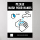 Das Poster "Wash Your Hands" ist ein einfaches, aber dennoch wirksames visuelles Instrument, das die richtige Handhygiene in öffentlichen Räumen, am Arbeitsplatz und in Gesundheitseinrichtungen fördert. Das Plakat enthält eine klare und präzise Botschaft, in der die Wichtigkeit des Händewaschen hervorgehoben wird, insbesondere in Krankheitszeiten oder in einem risikoreichen Umfeld. Das Design verwendet eine kühn anmutende Typografie in großer Schriftart-Größe, um die Aufmerksamkeit des Betrachters zu erregen. Der Schriftart ist leicht zu lesen und verwendet ein Farbschema, das gut mit dem Hintergrund kontrastiert, sodass die Nachricht auffällt.