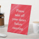 Behalt deinen Platz sauber und einladend mit diesem stilvollen Schild "Bitte ziehen Sie Ihre Schuhe aus, bevor Sie einsteigen". Mit einem fett roten Hintergrund und einer sanften Pinselstruktur ist es eine höfliche und dennoch klare Erinnerung für die Gäste, Ihre Zuhause zu respektieren.