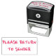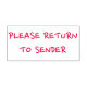 Dieses einfache Design aus Gummi-Briefmarke beinhaltet die Nachricht "BITTE RÜCKKEHR ZUM SENDER". Es könnte verwendet werden, um anzugeben, dass die empfangene Post möglicherweise falsch adressiert wurde, und sollte an den Absender zurückgeschickt werden.