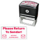 Dieses Design aus Gummi-Briefmarke beinhaltet die Botschaften "Bitte zurück zum Sender!" und "FALSCHE ADDRESSEE", zusammen mit einer Umschlagform. Es kann verwendet werden, um anzugeben, dass die empfangene Post an die falsche Adresse geliefert wurde, und sollte an den Absender zurückgeschickt werden.