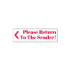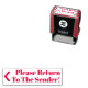 Dieses Design aus Gummi-Briefmarke enthält die Meldung "Bitte zurück zum Sender!", zusammen mit einem Pfeilsymbol. Es kann verwendet werden, um anzugeben, dass die erhaltene Briefpost an die falsche Adresse geliefert wurde, und sollte an den Absender zurückgeschickt werden.