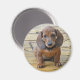 Niedlicher Welpenmagnet für die Dackel. Sie ist neun Wochen alt und sieht dich hoffentlich an. Tolle Geschenkidee.