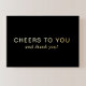 Elegant black 70th birthday thank you card featuring "Cheers To You And Thank You" in a blend of classic serif and simple typography, rendered in your choice of genuine gold, silver, or rose gold foil. On the back, add a personalized message and your name.