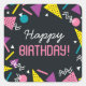 Black 80er Pattern Birthday Square Sticker
