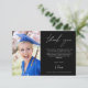 Black 2024 Abschluss Class of Dankeschön Karten, die ein Foto auf der Vorderseite haben. Die Dankeschön-Karten enthalten eine moderne, handgeschriebene, kursive Schriftzeichen-Typografie, die elegant, einfach und modern nach der Graduate Abschluss Day Feier zu verwenden sind.