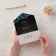 Black Agate Geode Aqua Turquoise Blue and Gold Foil Wedding Spring oder Summer Wedding Einladungen - beinhaltet moderne, schöne und elegante Drehbuch für die besondere Hochzeitstagsfeier.