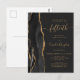 The left-hand edge of this elegant modern 50th anniversary party invitation features a black watercolor agate border trimmed with faux gold glitter. The customizable text combines gold-colored handwriting, copperplate and italic fonts on an off-black background.