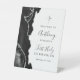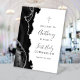 Die links Seite dieses eleganten Willkommenszeichens besticht durch eine schwarze Aquarellwand, die mit Imitaten aus silberem Glitzer bestickt ist. Über dem anpassbaren Text erscheint ein Imitat silbernes Folienkreuz, das Handschrift, Copperplate und kursiv Schriftart in Holzkohlegrau auf weißem Hintergrund kombiniert. Personalisieren Sie es mit dem Namen des Ehrengast und dem Datum. Ideal für die Erste Kommunion eines Jungen.
