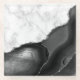 This elegant glass coaster features a digital image of white marble and black agate trimmed with faux silver glitter.