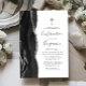 Die links Seite dieses eleganten, modernen Confirmation Einladens besticht durch einen schwarzen Aquarellrahmen, der mit Imitaten aus silberfarbenem Glitzer bestickt ist. Über dem anpassbaren Text erscheint ein Imitat silbernes Folienkreuz, das Handschrift, Copperplate und kursiv Schriftart in Holzkohlegrau auf weißem Hintergrund kombiniert. Auf der Rückseite ist ein passendes schwarz-silberfarbenes Design erkennbar.