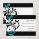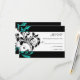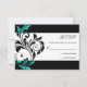 Black and Aqua Floral Swirl Wedding RSVP Karte