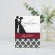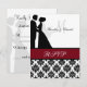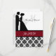 Schwarz-Weiß-Damast-Druck mit einer Cranberry-Band, eine Silhouette Braut und Bräutigam, und Bereiche, die Sie mit Ihren UAWG, Pärchennamen und Monogramm-Initial personalisieren können.