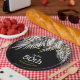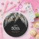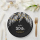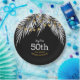Erstellen Sie schöne personalisierte Geburtstagsfeier-Teller mit Ihrem Namen, Alter und weißen Palmenblättern mit Lichterketten auf schwarzem Hintergrund - ÄNDERN SIE HINTERGRUNDCOLOR zu allem. PASSENDE Artikel in unserer Sammlung.