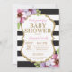 Einladung zur Black and Gold Baby Dusche. Gold Glitzer. Einladung zur Kinderdusche. Schwarze und weiße Streifen mit Lila und rosa Blume. Für weitere Anpassungen klicken Sie bitte auf die Schaltfläche "Anpassen" und verwenden Sie unser Designwerkzeug, um diese Vorlage zu ändern.