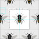Handgezeichnete schwarze und goldene Bienenmotive.