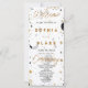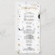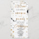Feiern Sie Ihre Gewerkschaft mit dem Hochzeitsprogramm der modernen Celestial Moon Sun and Stars Wedding Suite. Dieses elegante Design besticht durch ein himmlisches Motiv in Schwarz und Gold, das eine himmlische Reihe von Sternen, Sonnen und Monden vor einem unberührten, weißen Hintergrund präsentiert und so einen himmlischen Wandteppich kreiert, der so bezaubernd wie der Nachthimmel ist. Der Programmtext wird kunstvoll in einem Mix aus einfachem Druck, dekorativem Druck und aufwändigem Skript präsentiert, das eine Touch von Raffinesse und Launen hinzufügt. Die Schwarz- und Goldfarben harmonieren perfekt mit dem Himmelsthema und schaffen einen atemberaubenden visuellen Kontrast, der Ihre Gäste sicher begeistern wird. Auf der Vorderseite des Programms werden die Gäste mit dem Wort "Willkommen" begrüßt, gefolgt von den Namen der Paare, dem Datum der Hochzeit und dem Ort, sowie der Reihenfolge der Zeremonie. Auf der Rückseite des Programms werden die Mitglieder der Hochzeitsfeier aufgelistet, um sicherzustellen, dass jeder, der an Ihrem besonderen Tag beteiligt ist, anerkannt und geschätzt wird. Dreh über das Programm und du wirst feststellen, dass die Rückseite das gleiche himmlische Design wie die Vorderseite aufweist und so eine zusammenhängende und visuell atemberaubende Präsentation schafft. Diese sorgfältige Liebe zum Detail sorgt dafür, dass jeder Aspekt des Programms den himmlischen Stil widerspiegelt und die Bühne für eine Hochzeitsfeier aus dieser Welt schafft. Ob Sie ein Sterngucker, ein Mondkind oder einfach jemand, der die Schönheit des Kosmos schätzt, dieses Hochzeitsprogramm ist die perfekte Wahl für jeden, der himmlische Lieben hat. Es ist eine himmlische Feier der Liebe und des Engagements, an die man sich bestimmt für immer erinnern wird.