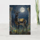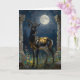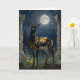 A black and gold Gazelle themed "thinking about you" card for a friend or family member. Inside is a sentimental message that you can leave or edit. On the front is an illustration of a majestic gazelle with fur like molten black and gold, standing in ancient ruins bathed in ethereal moonlight. Intricate carvings adorn crumbling stone pillars, and bioluminescent flora casts a soft, otherworldly glow. The scene is rendered in a rich, textural oil painting style with thick impasto strokes.