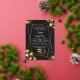 Make a dramatic statement with this truly glamorous wedding invitation. This design features a rich black background contrasted beautifully with luxurious metallic gold floral elements and a bold geometric frame. The luxurious look is completed by two elegant interlocking wedding rings at the bottom. The strong contrast and deep colors make this a perfect choice for formal, evening, or black-tie events. All text and details are fully editable, including the names, date, and RSVP information. Look through the collection for matching stationery to complete your opulent wedding suite.