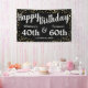 Elegant adult joint birthday party banner featuring a stylish black background that can be changed to any color, a scattering of party gold confetti glitter, and a modern twin celebration template that is easy to personalize.