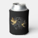 Schmuck aus schwarzem und goldenem Schmuck, der mit grauem Hintergrund und Pflanze geschmückt ist. Schmuckvögel. Goldener Vogel. Goldvogel.