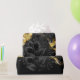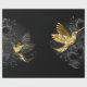 Schmuck aus schwarzem und goldenem Schmuck, der mit grauem Hintergrund und Pflanze geschmückt ist. Schmuckvögel. Goldener Vogel. Goldvogel.